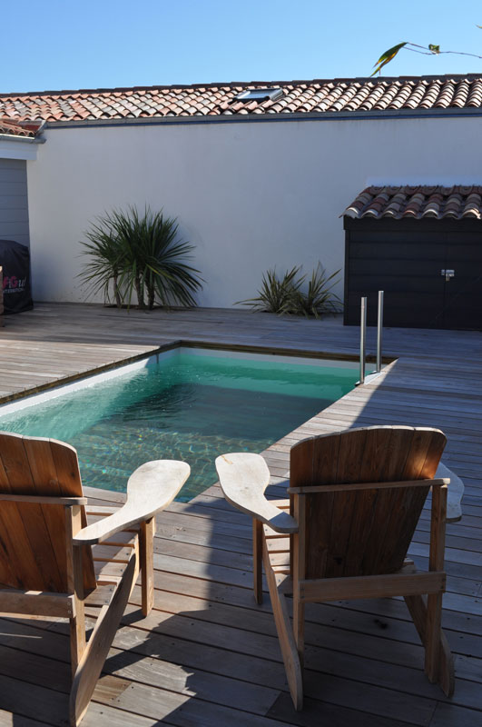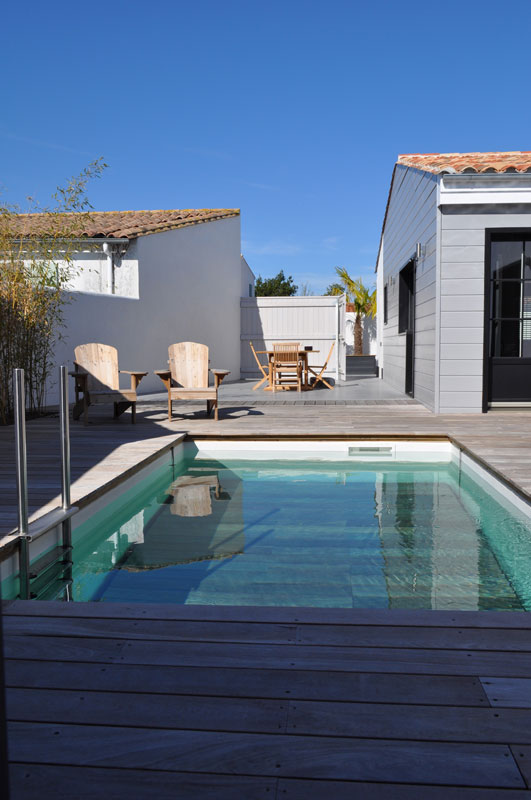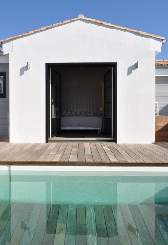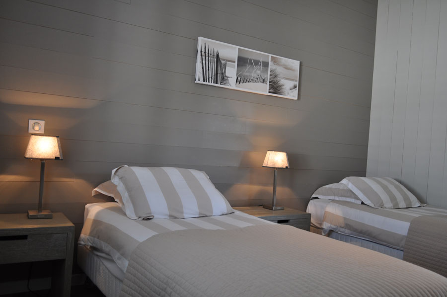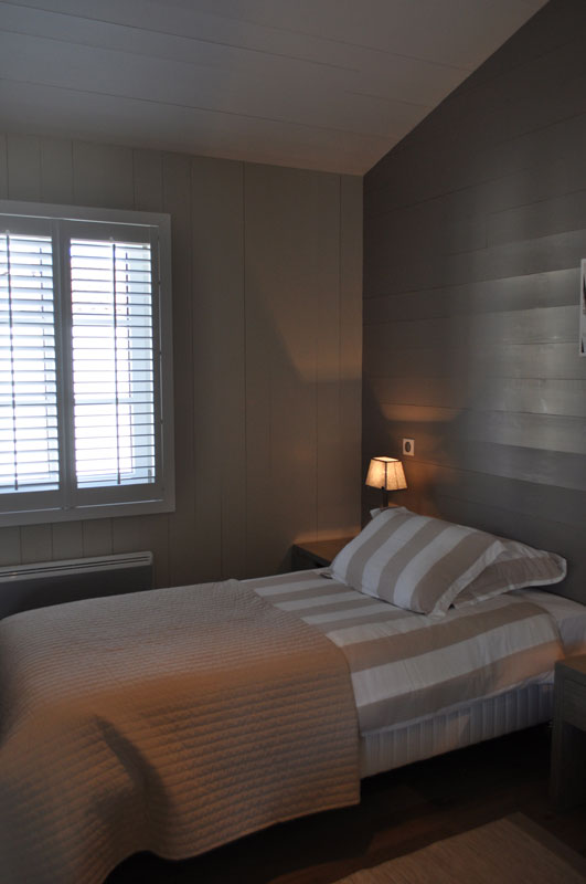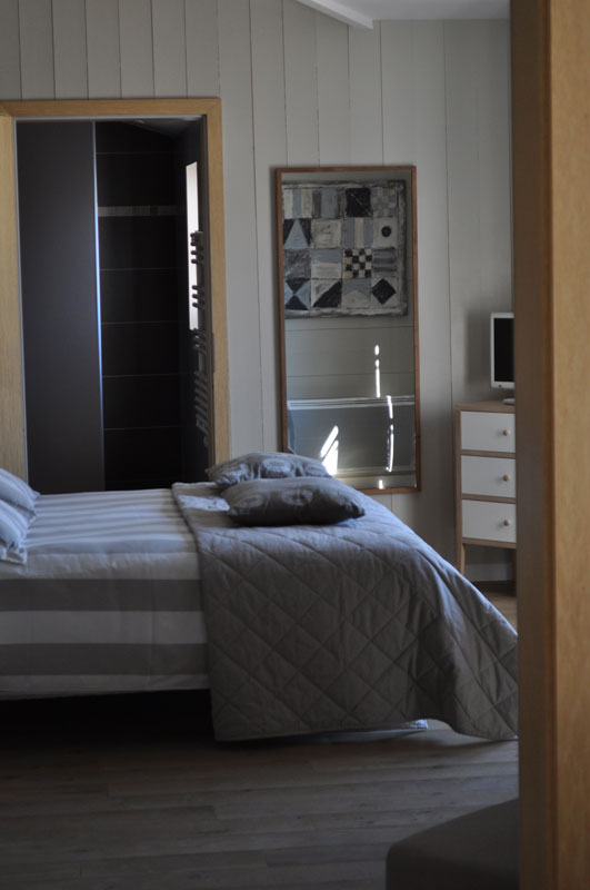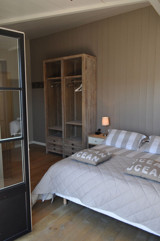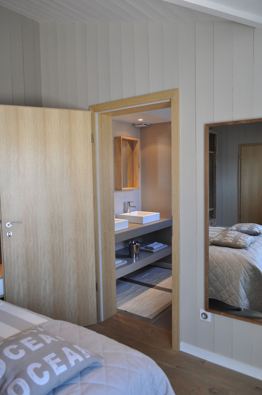 This Lodge is absolutely atypical with a very nice parental bedroom. Indeed, with its spaciousness, its very elegant furniture, and a view overlooking the pool from the bed, this bedroom is a real success for those who are lucky enough to enjoy it. Moreover, the particular orientation gives it 2 major advantages. Turning its back to the residence, you stay in a real intimate and untouchable place. Also, you’ll have the privilege to enjoy the sun of Ile de Ré until sunset, which offers every day various colours.